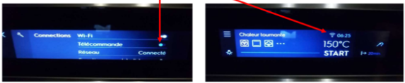 Lorsque le four est connecté, la fonction "Télécommande" peut être activée et les données mobiles doivent être réactivées sur l'appareil mobile.