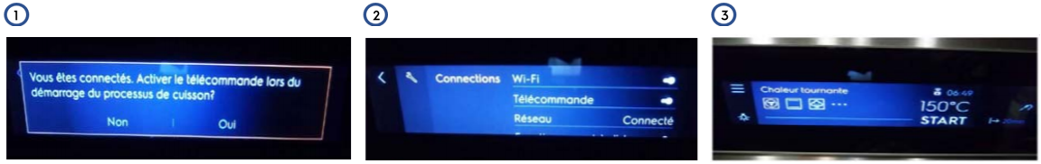 - A la fermeture de la porte, un message apparaîtra sur le bandeau du four. Réactivez ou non le contrôle à distance.