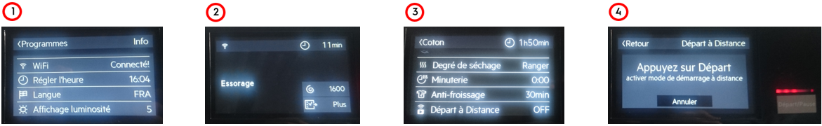 - Appuyez sur la touche "Départ/Pause" pour activer l'option "Départ à Distance".
