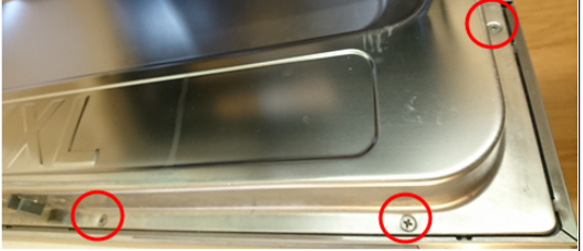 Retirez les 2 vis de fixation sur la porte intérieure (droite et gauche) et retirez la porte extérieure