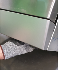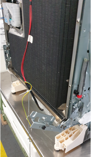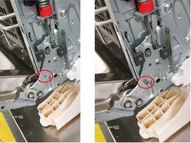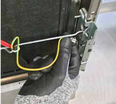 ouvrir la porte et bloquer le mouvement de la charnière en plaçant une goupille dans le trou en surbrillance