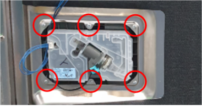 Retirez les 6 vis de fixation et débranchez toutes les connexions et le faisceau des prises avant de retirer le distributeur de détergent.
