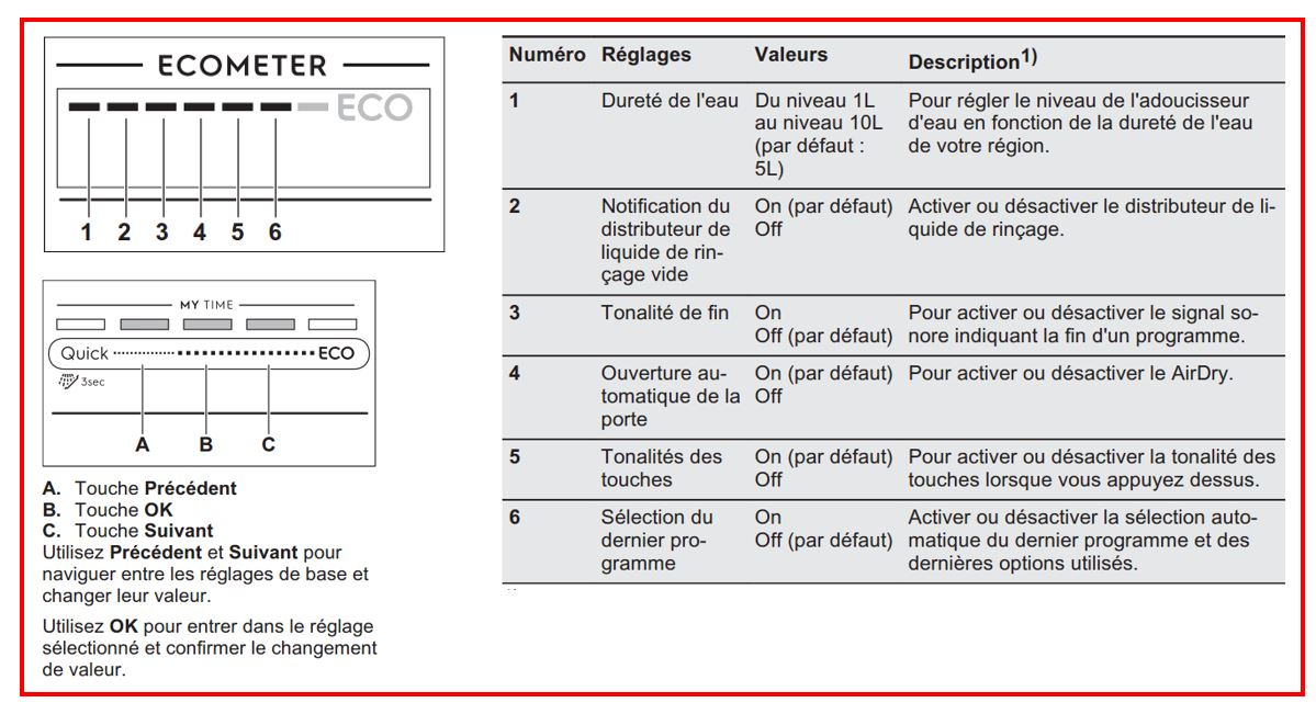 - Comment effectuer différents réglages sur mon lave-vaisselle (Quick select, Ecometer, ...) ?