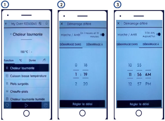 - Ou indiquez l'heure de démarrage du four en sélectionnant "DEMARRAGE A".