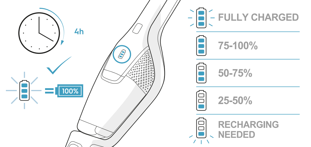 5. Chargez complètement l'aspirateur (aspirateurs-balais uniquement)