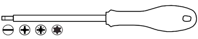 Tournevis à tête fendue, à empreinte cruciforme et à empreinte à six lobes internes. | |